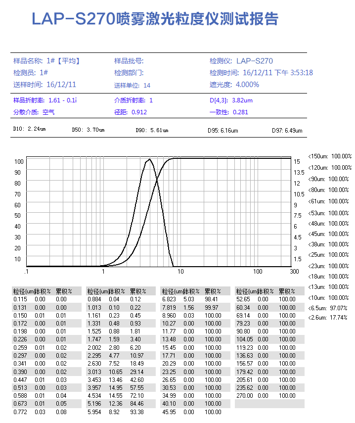LAP-S270噴霧激(ji)光粒度(dù)分析儀(yí)
