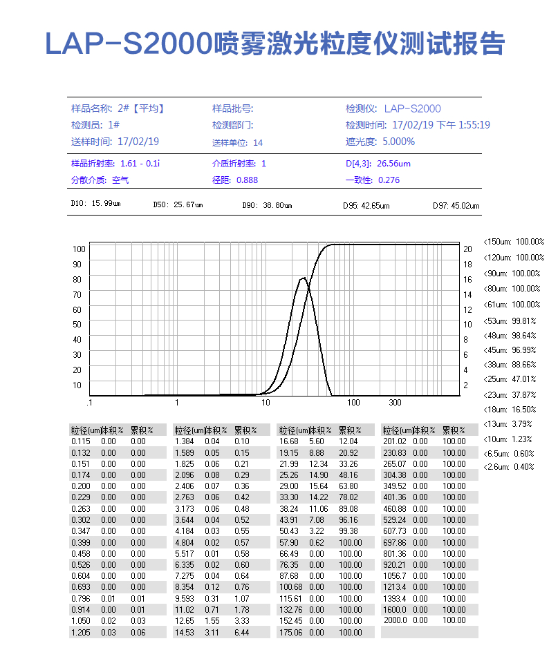 LAP-S2000噴(pen)霧激光粒度分(fen)析儀主要性能(neng)特點: