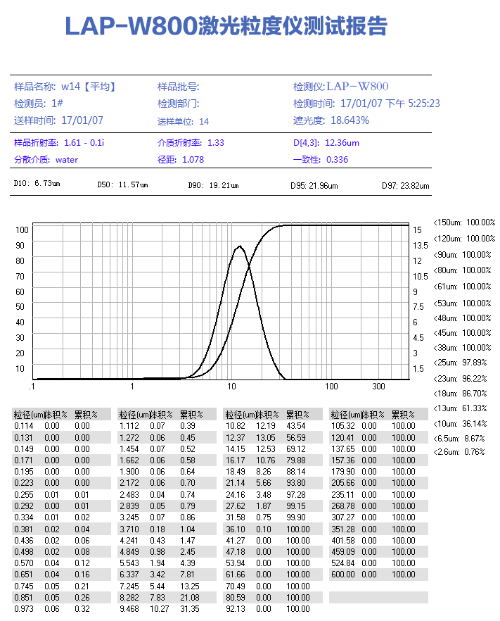 體積(jī)分布和數(shu)量分布,以(yi)滿足不同(tóng)行業對于(yú)粒度分布(bù)🈲的不同統(tong)計方式 | ||